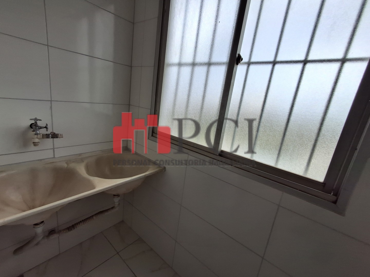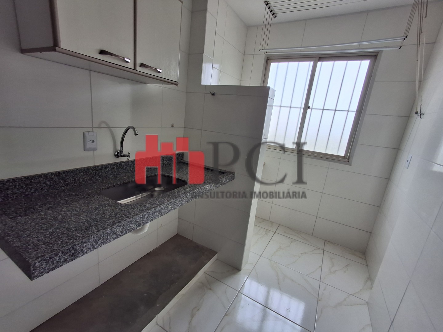 Área de serviço com máquina de lavar