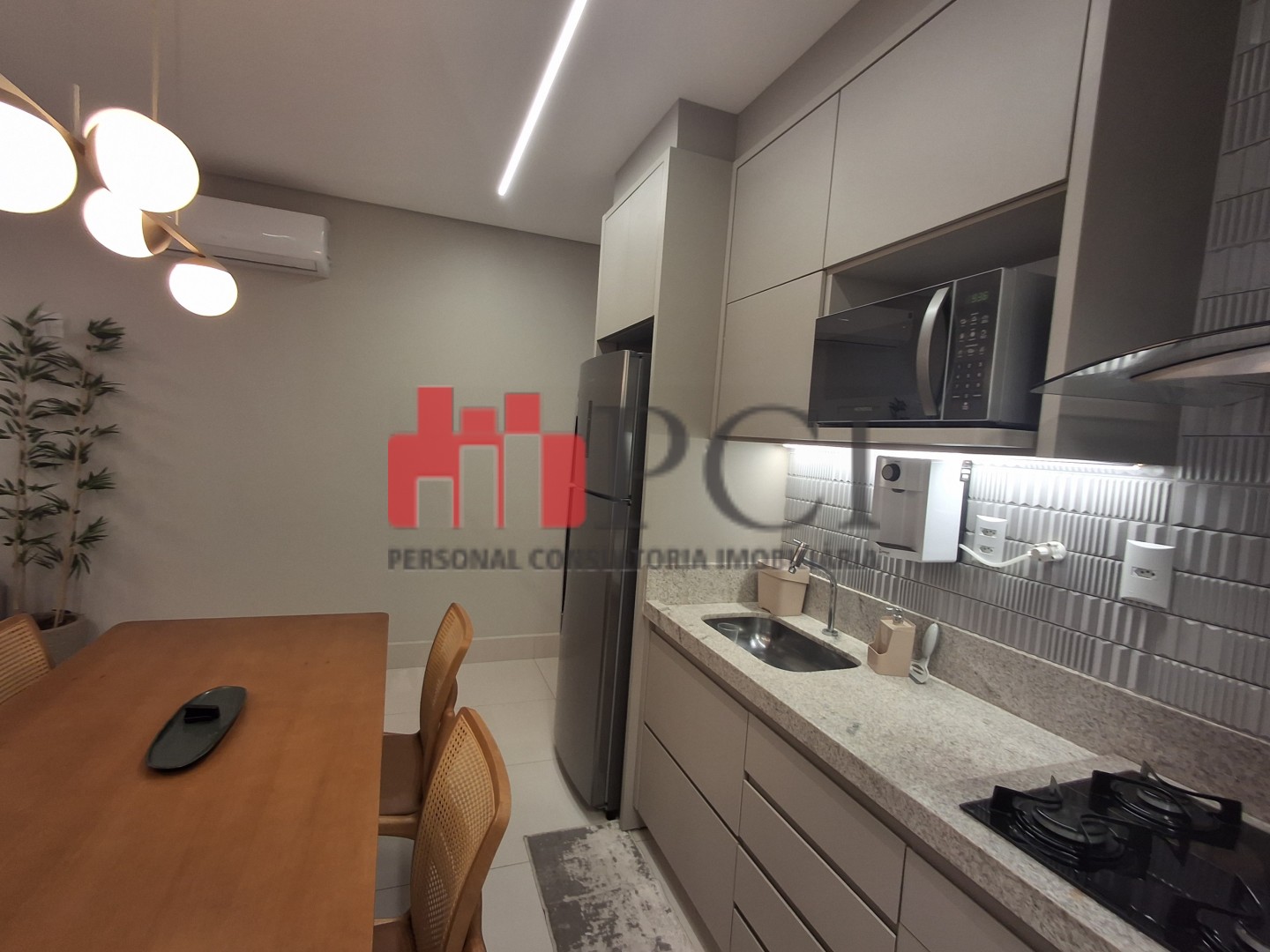 Possui academia, espaço gourmet, parquinho com diferentes brinquedos, salão de festas, sacada.